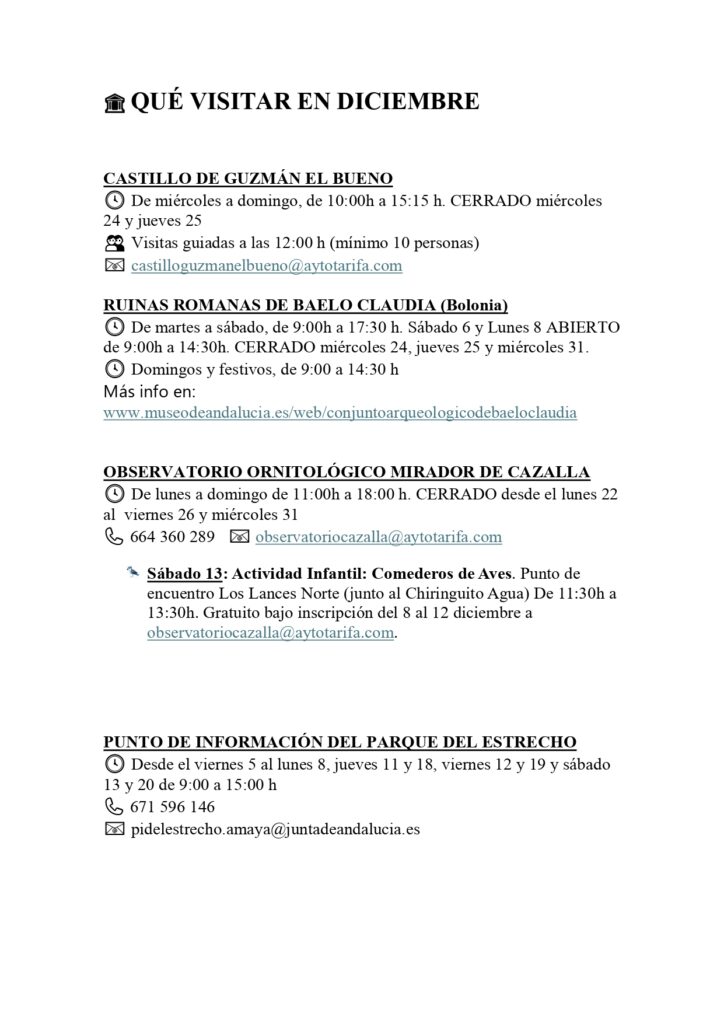 VISITAS TURÍSTICAS DICIEMBRE EN TARIFA