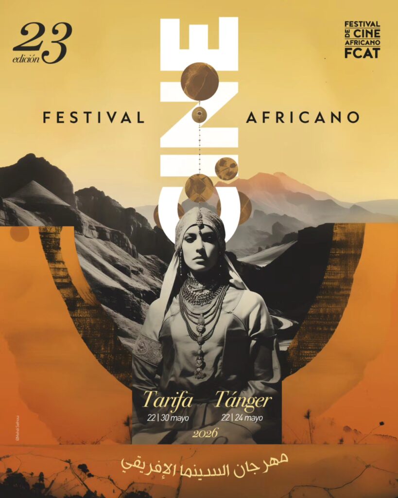 ¡Os presentamos el cartel del #FCAT2026! Obra del artista tangerino Mehdi Sefrioui, está protagonizado por un mujer amazigh o bereber en mitad de un paisaje norteafricano con tintes alucinados y planetarios. La imagen quiere tender un puente geográfico con las islas africanas, tema central hacia el que mirará en esta edición el festival.