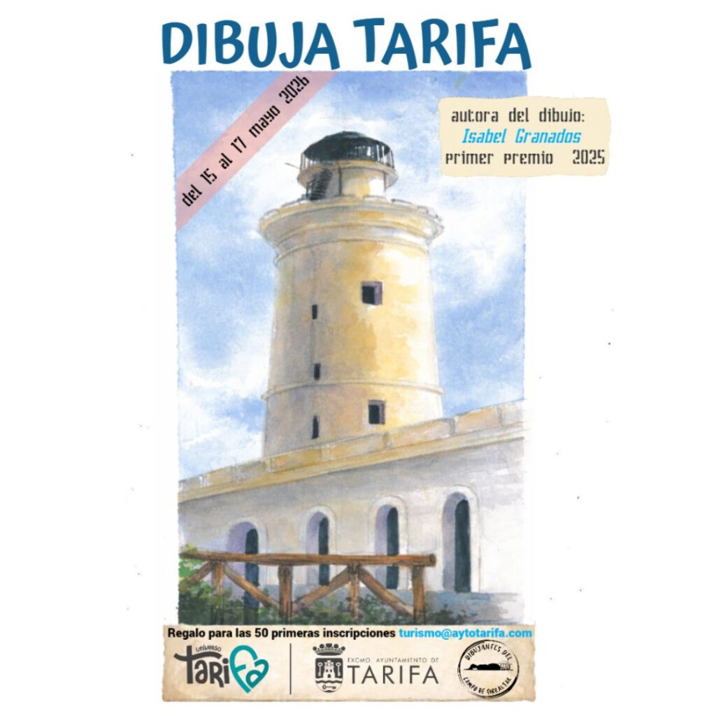 II Jornadas Dibuja Tarifa ¡Tras el éxito de la primera edición, volvemos a celebrar este evento de Urban Sketchers! Estáis todos y todas invitados a plasmar Tarifa a través de papel. Del viernes 15 al domingo 17 de mayo Oficina de Turismo de Tarifa La Delegación de Turismo del Ayuntamiento de Tarifa, junto con la Asociación de Dibujantes del Campo de Gibraltar, ha programado lo siguiente para vosotros: Regalos para las 50 primeras personas que acudan el viernes a la Oficina Concurso con premios en metálico el sábado Visitas guiadas al entorno cultural, patrimonial y natural del municipio PARA CONCURSAR EL SÁBADO 16 Es muy importante la inscripción previa para poder participar en el concurso. La inscripción se abrirá el mismo viernes 15 y finalizará el sábado 10h30. La organización entregará a cada participante el sábado a partir de las 10:00 una lámina A4 sellada. Las obras deberán realizarse exclusivamente sobre el papel proporcionado in situ y no podrán ser retocadas fuera del horario oficial del concurso. Debes rellenar el formulario de Google Forms en el siguiente enlace: https://docs.google.com/.../1d2Yr3N5A0SqO0_uqIsBioL.../edit PREMIOS Primer Premio: Cheque regalo de 150 € y el honor de ilustrar el próximo cartel Segundo Premio: Cheque […]